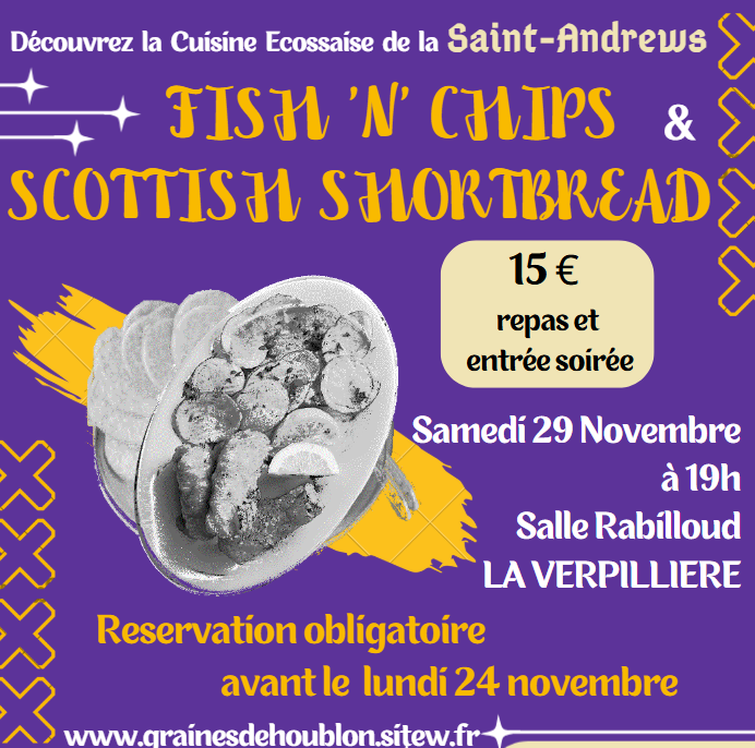 - repas écossais (fish'n'chips) à 19h (uniquement sur réservation)